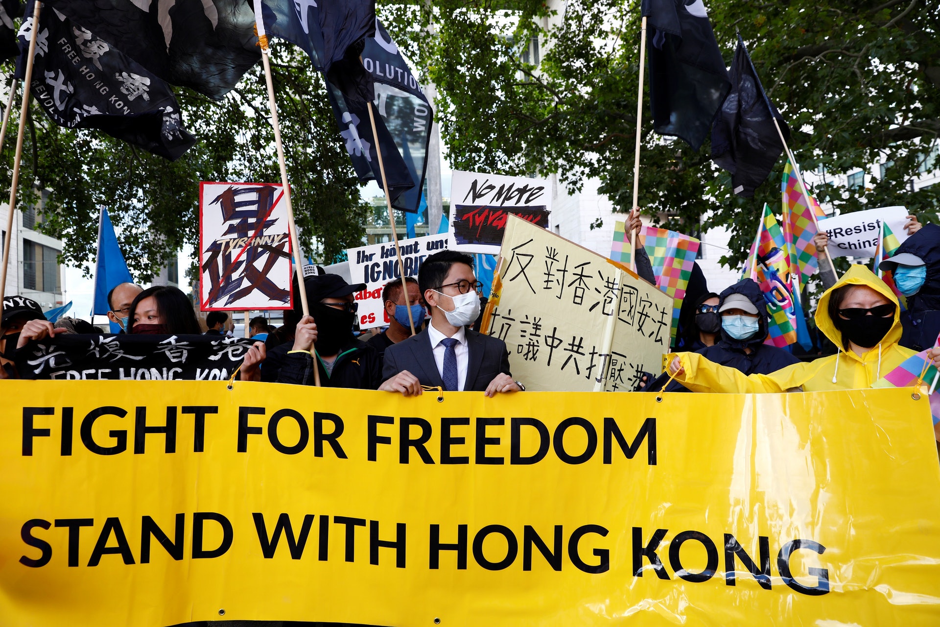《德國之聲》報道,在王毅與馬斯會面期間,香港前立法會議員羅冠聰在德國外交部大樓外與其他約100至150名民眾一起集會,羅冠聰呼籲馬斯關注香港的自由與人權問題。