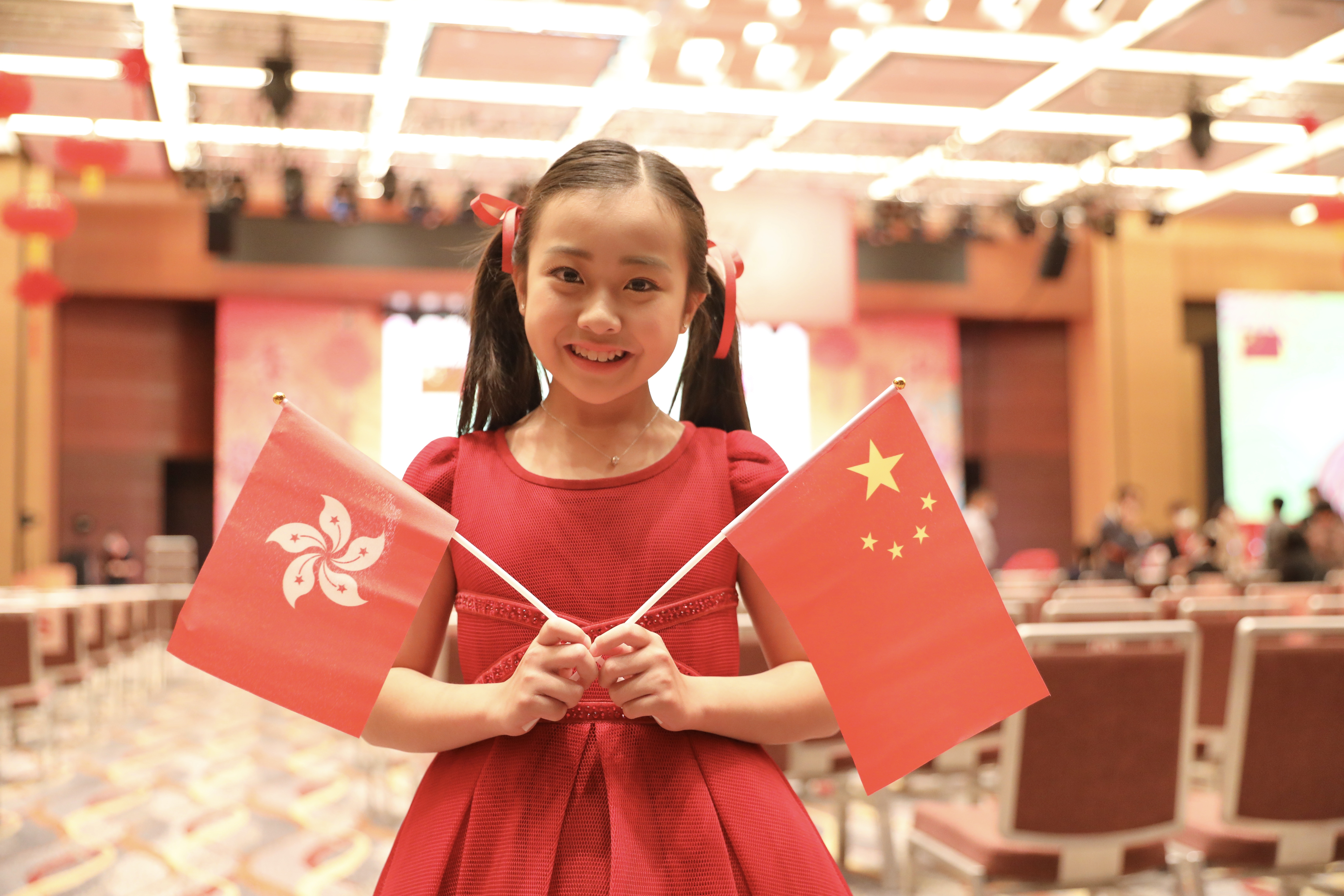 在會上,10歲的香港小朋友周詠芯表演了童聲二重唱《我和我的祖國》,她接受點新聞記者採訪時表示,今次演出非常榮幸,亦有提早一星期準備,希望之後可以有更多這樣的愛國活動。