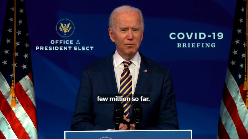 同日,美國當選總統拜登指責現任特朗普政府在部署新冠疫苗接種方面的行動滯後。