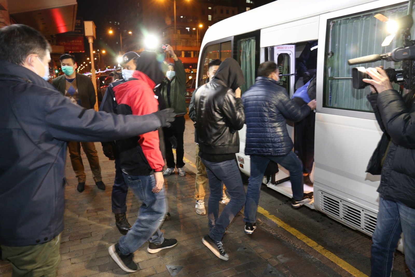 屯門警區刑事部及特別職務隊,根據線報及經調查後,在今日(1月1日)凌晨零時許,到屯門建發街及石排頭街,搜查3間懷疑有黑幫背景的無牌酒吧及1間派對房間。警方在上述處所內共檢獲逾2000罐啤酒及大量影音器材,43男28女,年齡介乎19至62歲,分別涉嫌「無牌賣酒」、「在無牌處所內飲酒」及違反「禁聚令」被捕及票控。