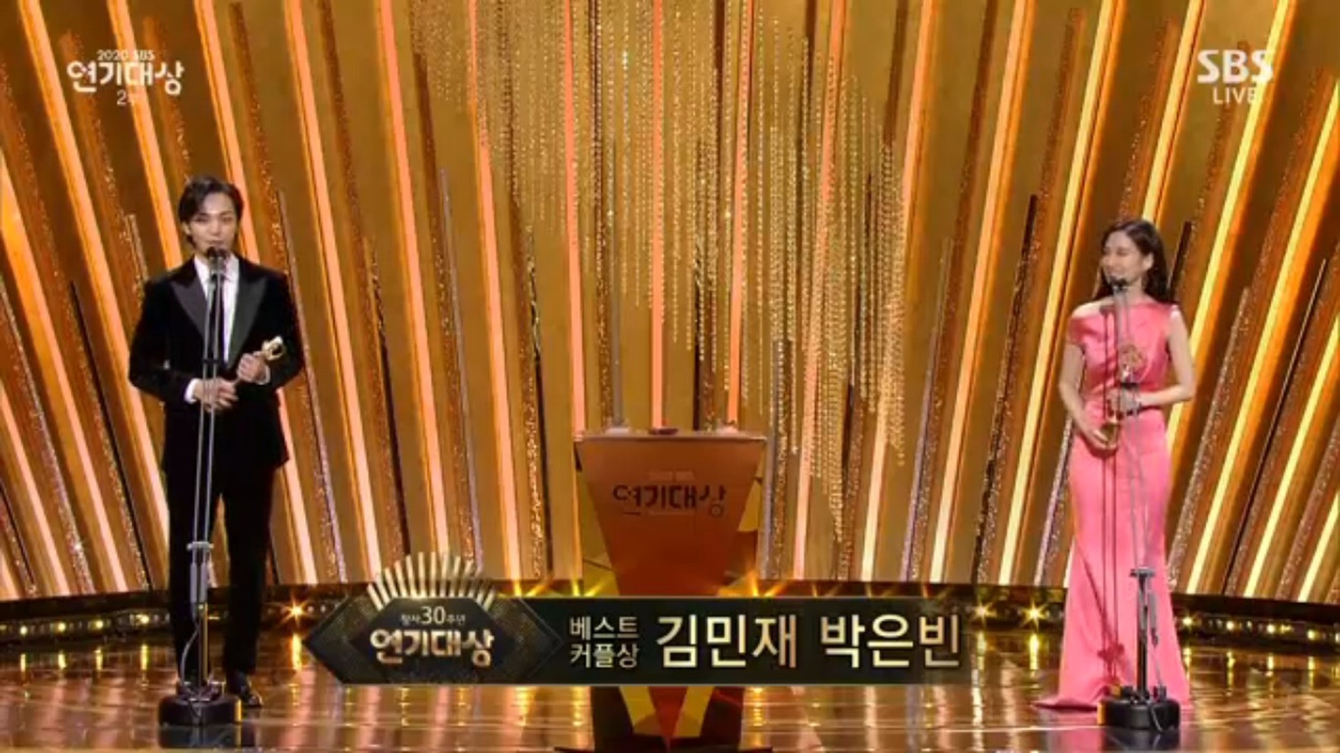 韓國三大免費電視台之一的SBS除夕夜(31/12)在首爾舉行《創社30周年 2020 SBS演技大獎》。劇集《Penthouse》成為大贏家,共捧走「中篇及長篇劇部門男、女子最優秀演技獎」、「男子助演獎」等六項獎項,合共九個獎座,當中罕有爆出「三視后」賽果,主演的金素妍、柳真和李智雅齊齊得獎。不過,《Penthouse》最後卻未能再一下城贏得「大獎」,因為「大獎」得主是《Stove League》(港譯《奇蹟拍檔》)的南宮珉,雖然劇集收視不算高,但口碑不俗,之前已在「第56屆百想藝術大獎」奪得「電視劇作品賞」,非常犀利。