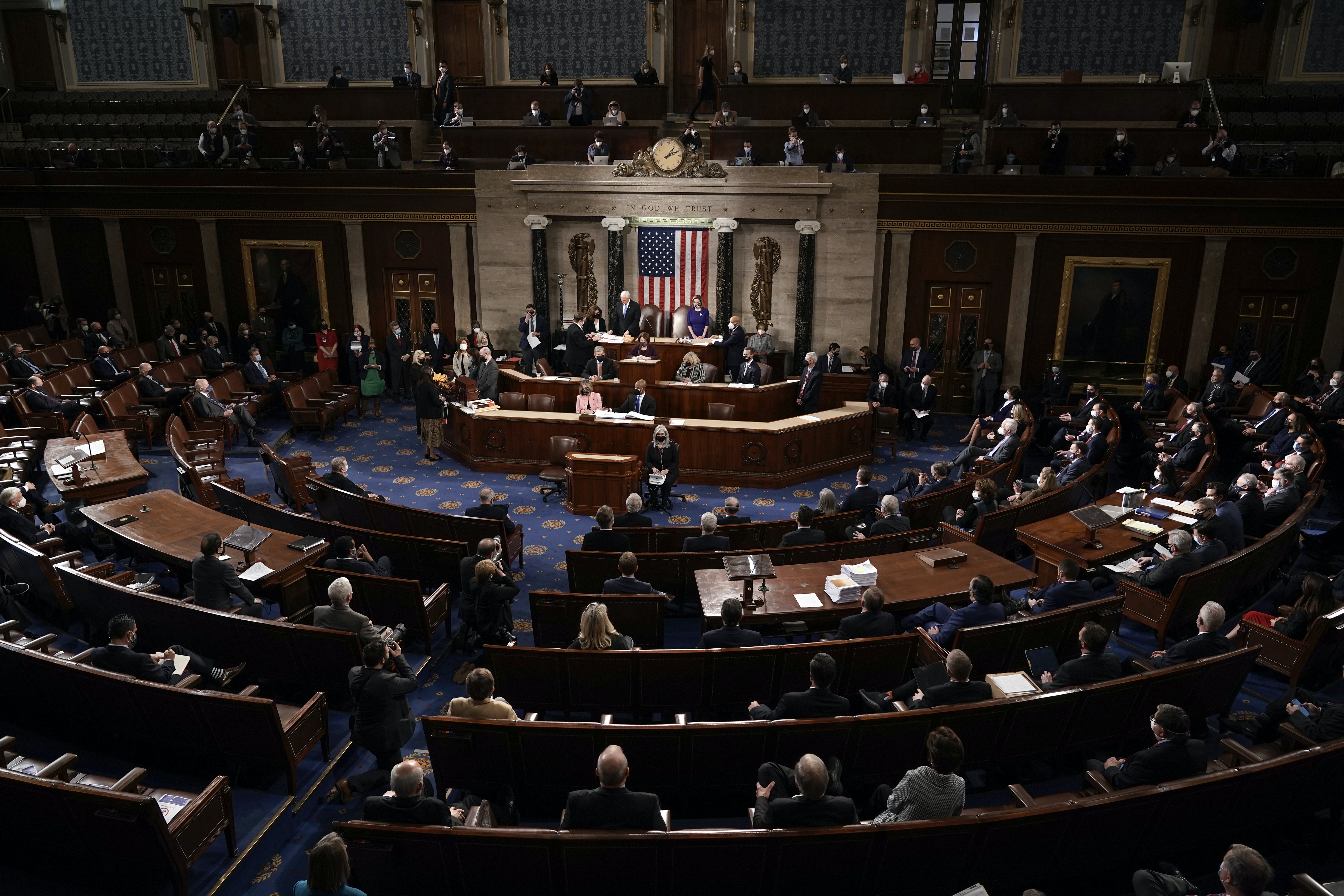 圖為2021年1月6日,美國有示威者闖進國會,議員撤離眾議院議事廳。(美聯社)