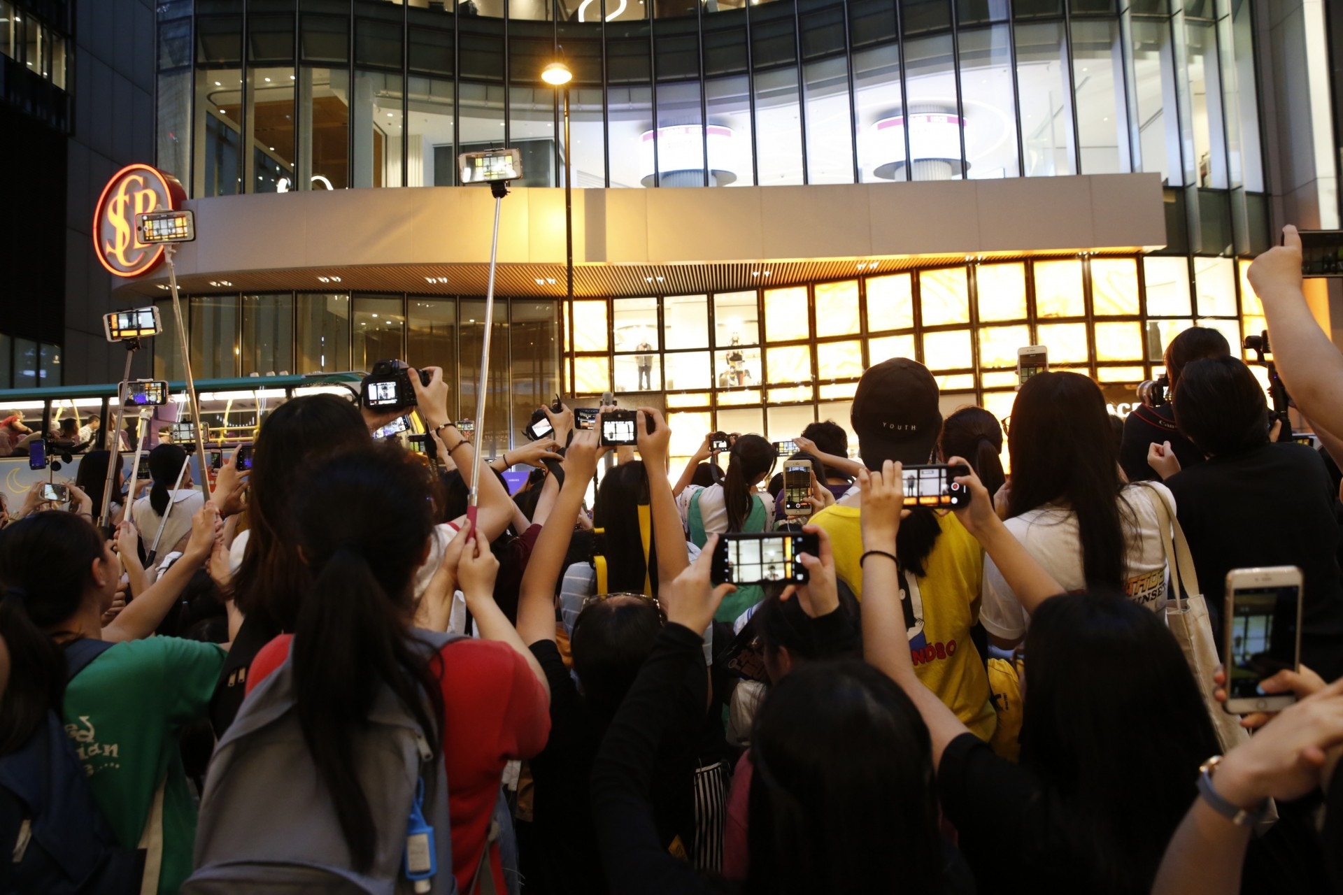 燦烈久違近一年再來到香港,有粉絲為見偶像一面,早上七點就在店外霸定頭位。活動未正式開始前,燦烈都非常識做,走到櫥窗前與等候已久的粉絲打招呼。黑外套打扮的燦烈一出場,引來全「街」粉絲的尖叫聲。談到大量粉絲到場支持,他說:「很久沒有見到香港粉絲,所以心情非常好,希望短時間內可以和EXO成員一同來香港與大家見面。」