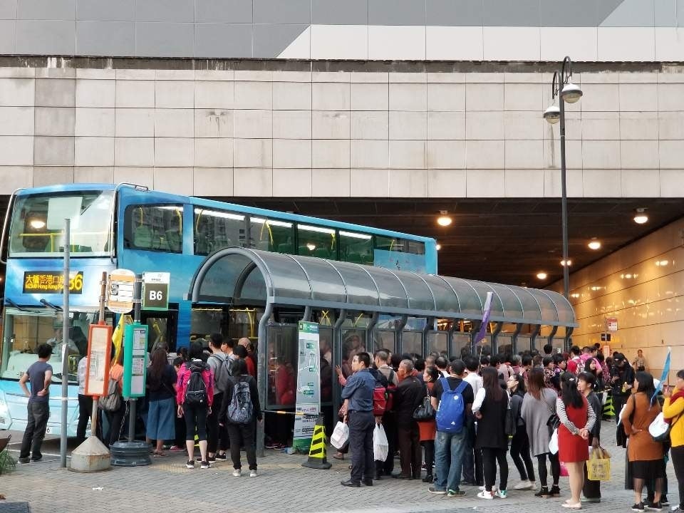 B6巴士站可往返東涌及大橋香港口岸,東涌車站通車初期常大排長龍。東涌區議員郭平指出,車站現時已搬遷至昂坪360纜車站旁的臨時巴士站,該地相對空曠,料可應付「五一黃金周」的龐大人流。