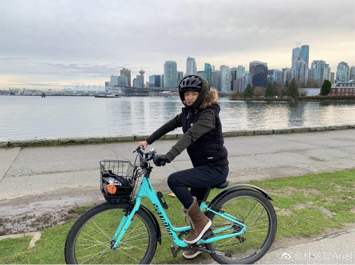 5.保持运动习惯:依晨曾表示自己不喜欢单一、反复性高的运动,所以她会选择结合大自然的运动,例如潜水、踩自行车等,可以在欣赏风景的同时消耗热量。(林依晨微博图片)