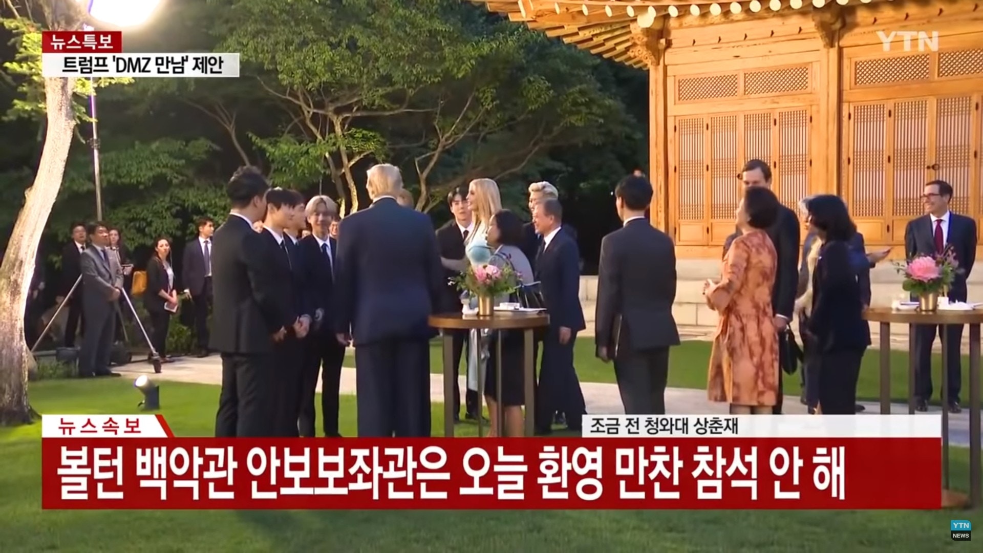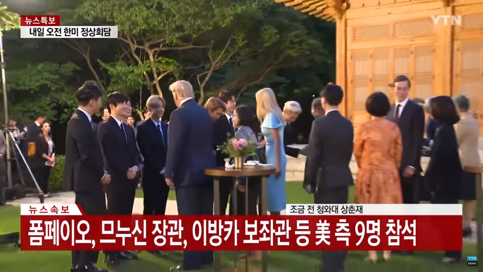 特朗普与EXO及朴世莉逐一握手,双方表现有友好。(YTN NEWS截图)