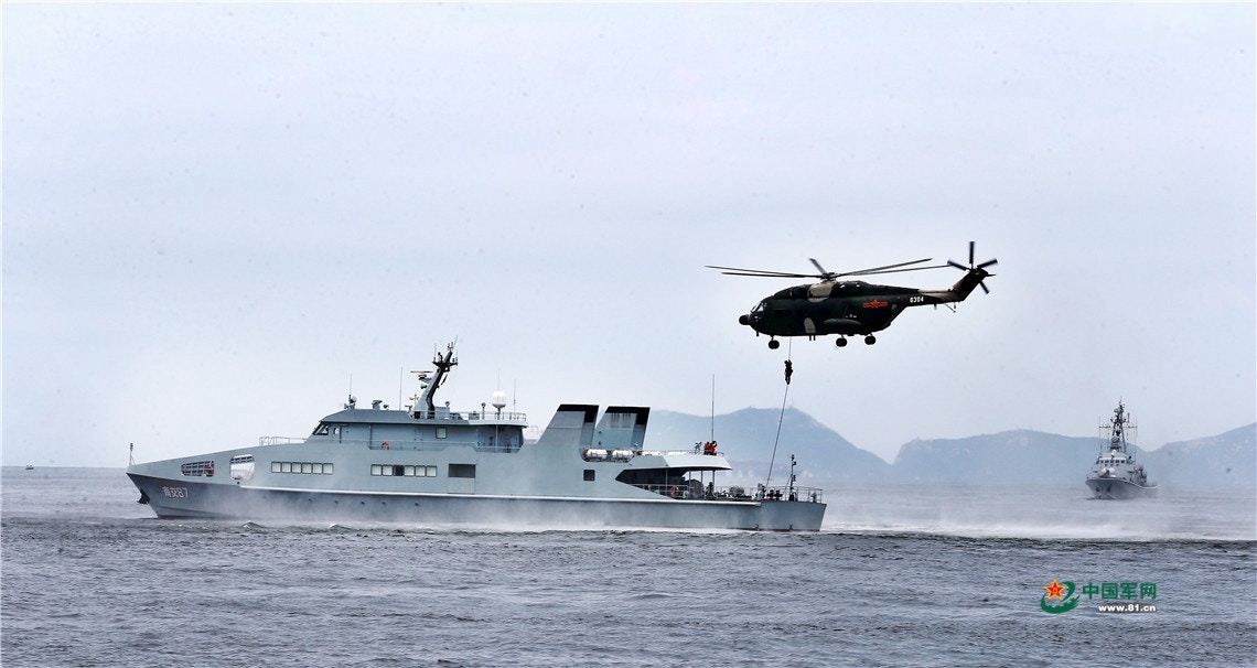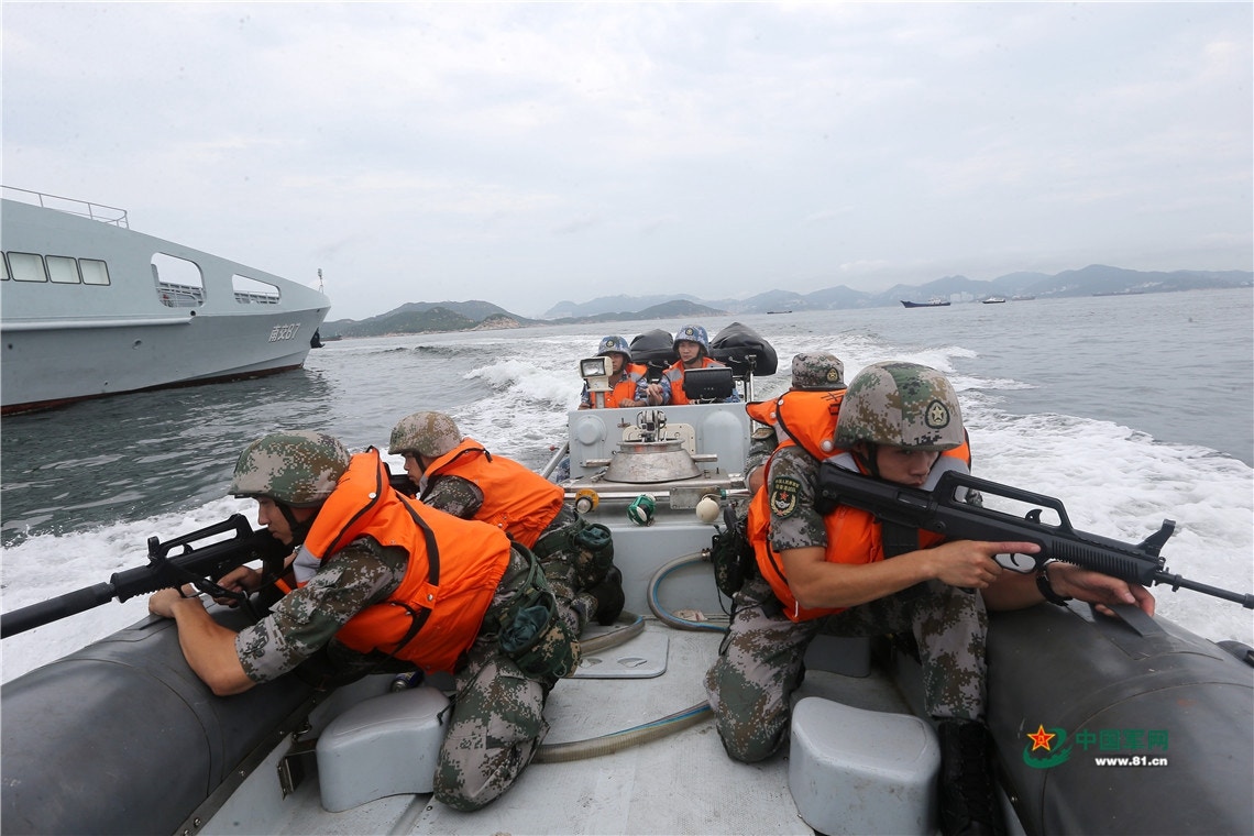 駐港解放軍日前在本港海域進行海空巡邏演練。(中國軍網圖片)