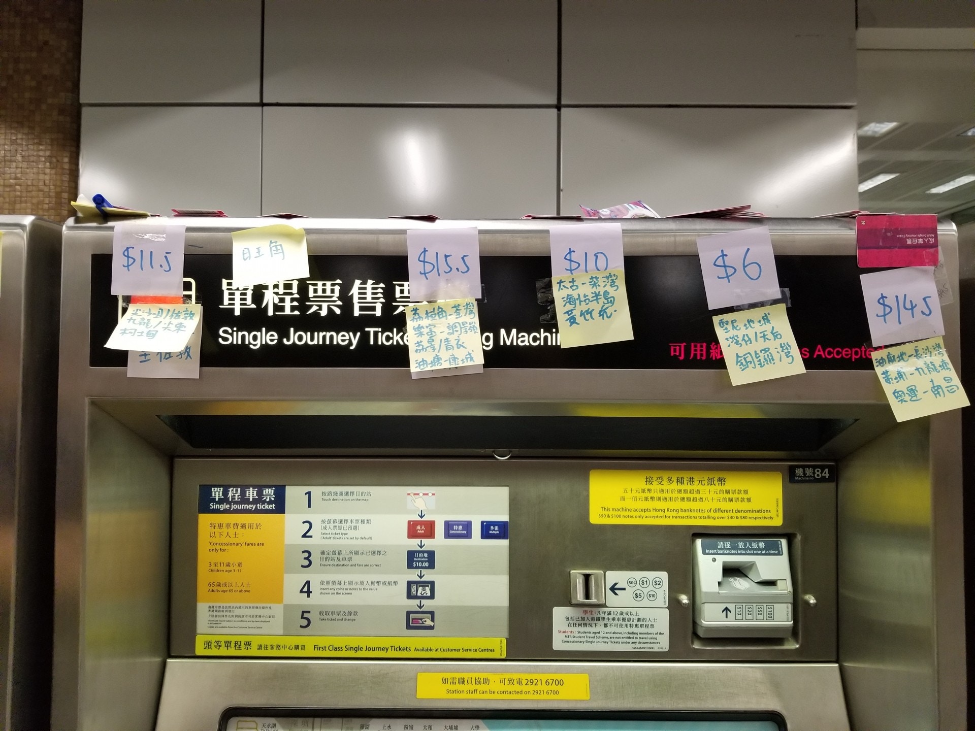 港鐵上環站有示威者購買衣服供更換,又用零錢放於購票機上購買單程票。
