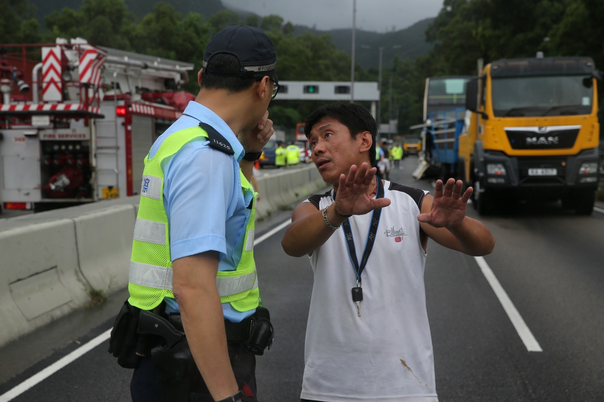 巴士車長由消防救出,他陷入昏迷,送院搶救。