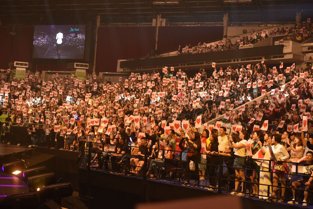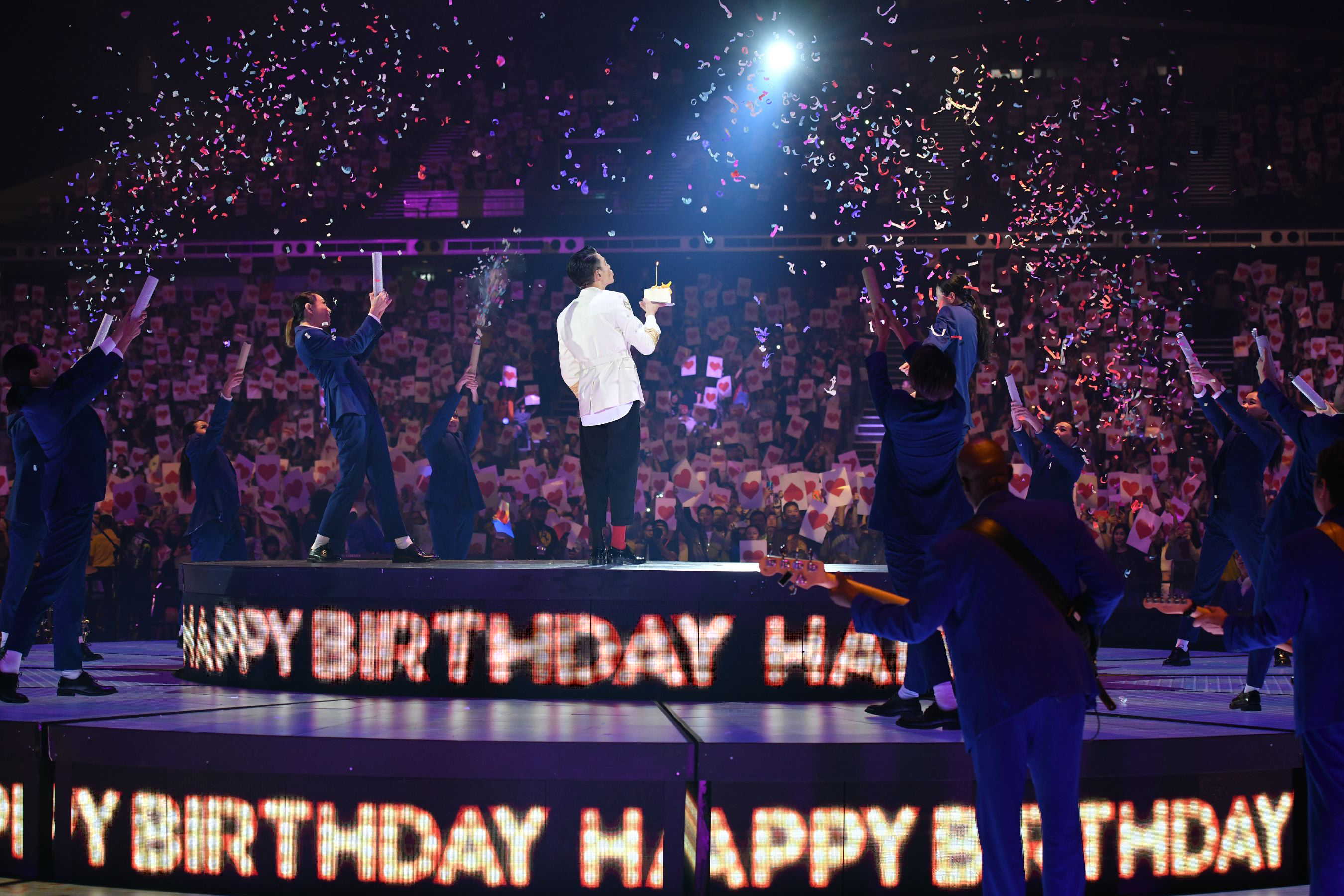闊別新加坡舞台11年的劉德華,昨晚(9月27日)於新加坡室內體育館在過萬位觀眾陪同下,一齊歡度58歲生辰。全場fans手執紅心生日卡高唱《Happy Birthday》,讓台上的華仔再一次留下充滿愛的窩心回憶。