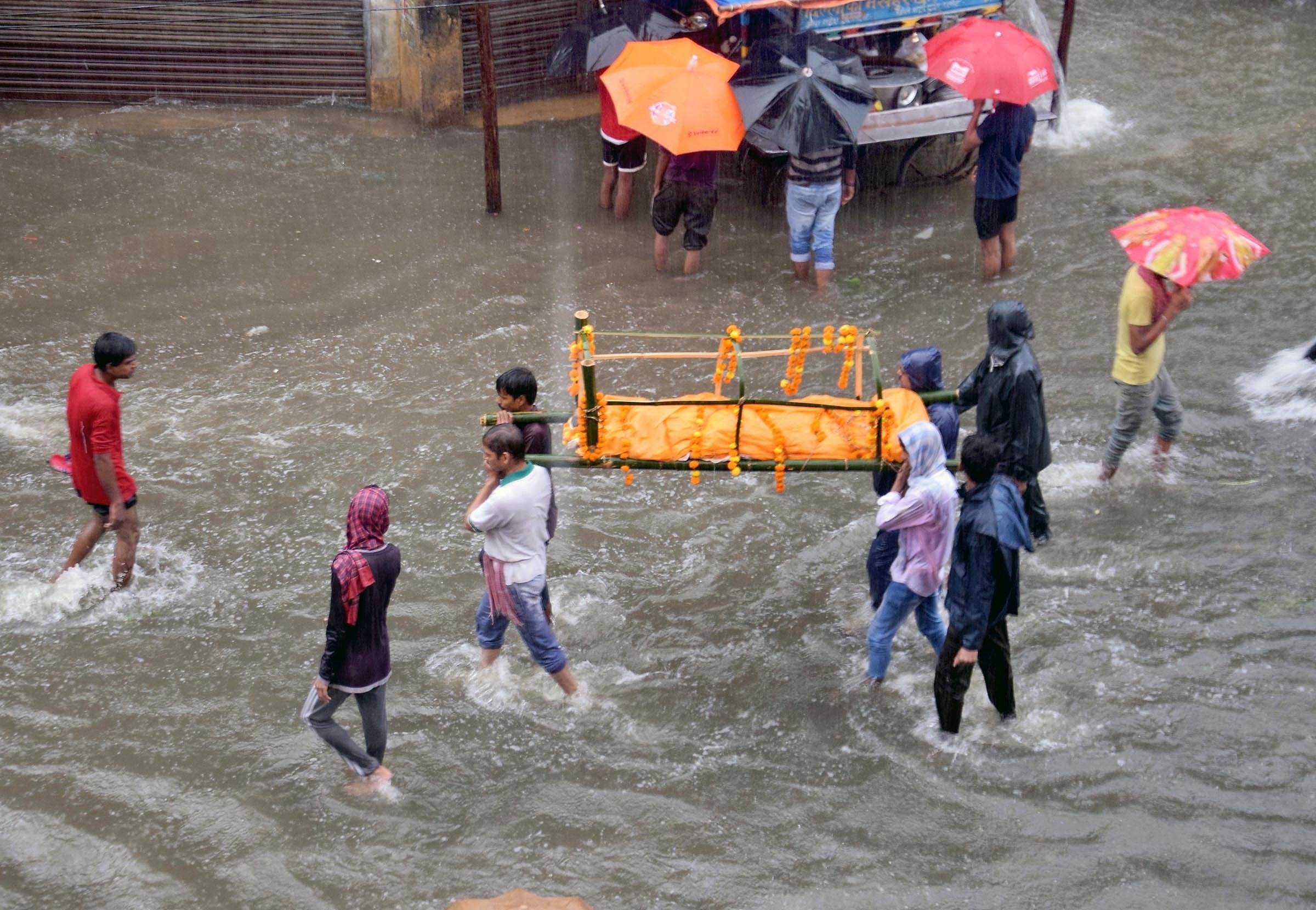 印度傳媒NDTV報道,暴雨亦造成比哈爾邦7人死亡。當局派出橡皮艇在水浸的街道上救出被困的村民。