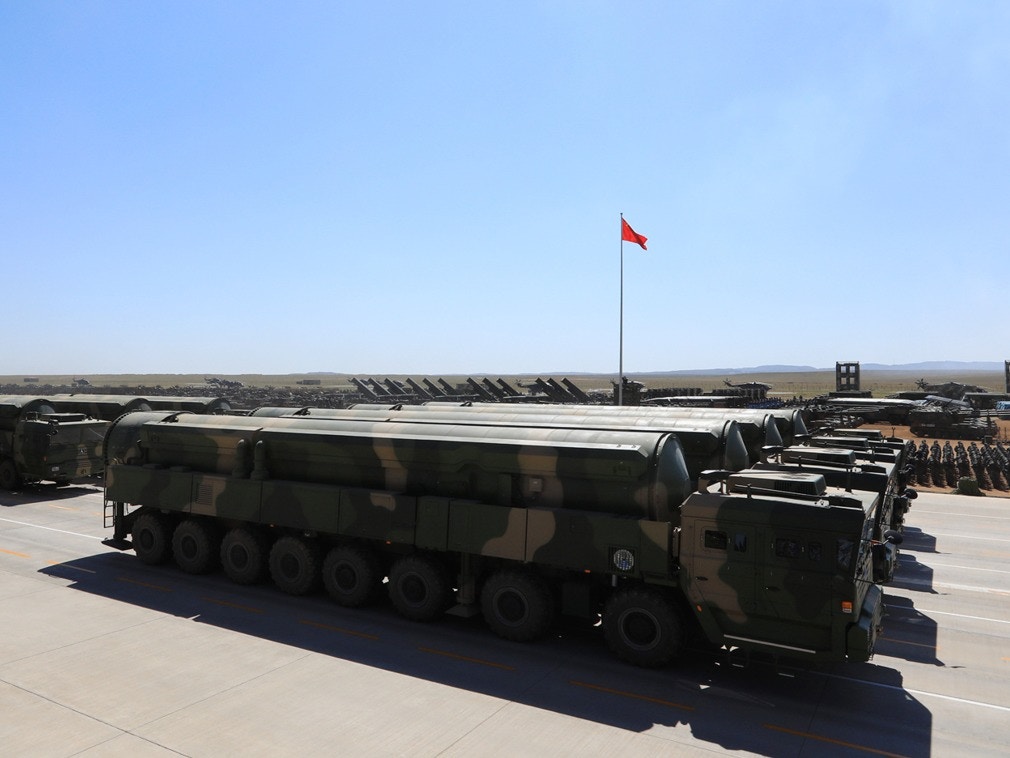 德國之聲報道稱,中國官媒將關注焦點放在東風-41洲際彈道導彈上。據稱, 該型導彈可攜帶多枚核彈頭,攻擊美國本土,構成中國核打擊力量的基礎。