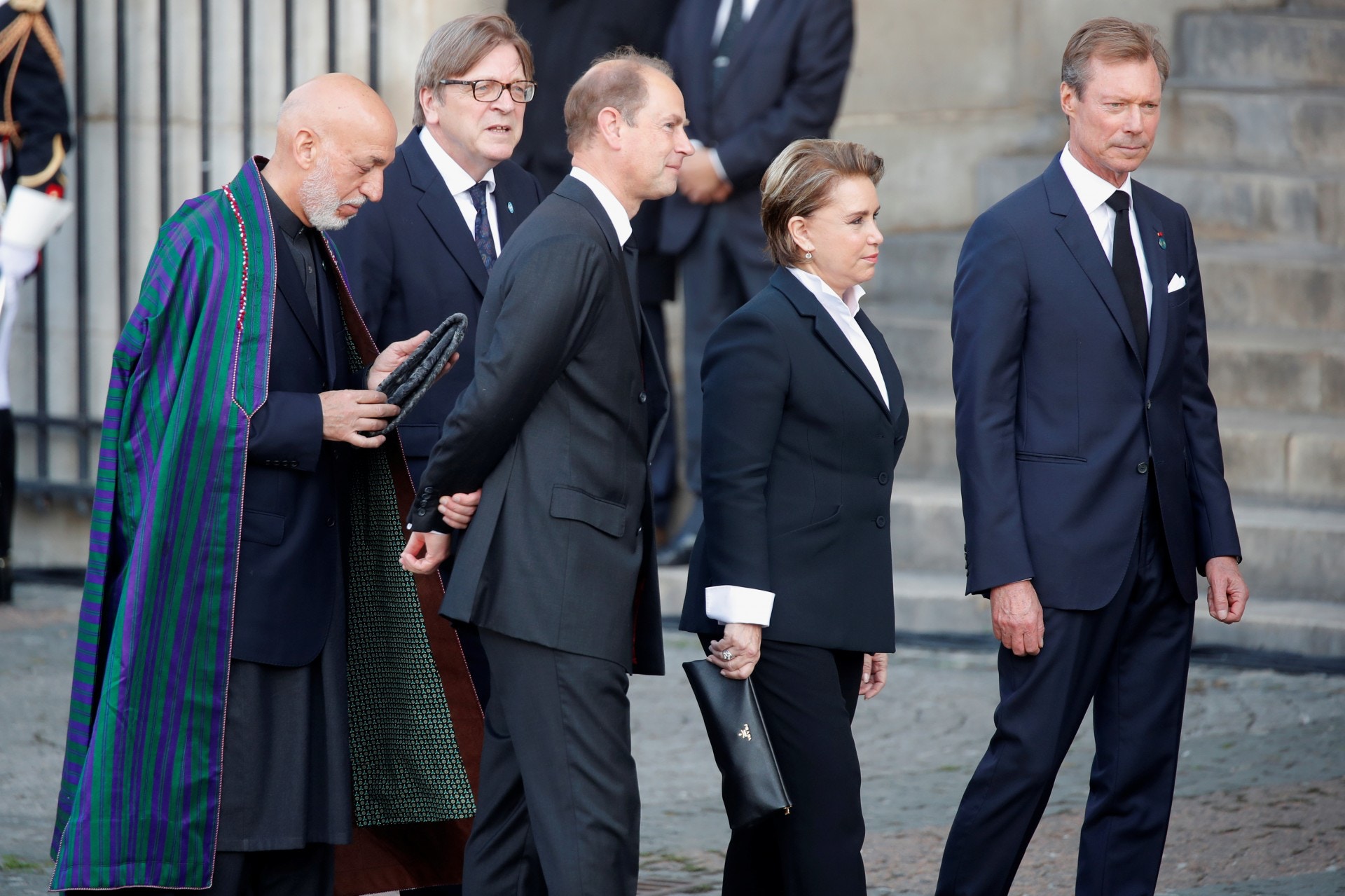 馬克龍和多名前任或現任國家領導人出席葬禮,包括俄羅斯總統普京、德國總統施泰因邁爾(Frank-Walter Steinmeier)、黎巴嫩總理哈里里(Saad al-Hariri)、約旦國王阿卜杜拉二世(King Abdullah II)、德國前總理施羅德(Gerhard Schroeder)和美國前總統克林頓(Bill Clinton)。英國愛德華王子(Prince Edward)亦有出席。歐盟委員會主席容克(Jean-Claude Juncker)則因健康問題未有出席。