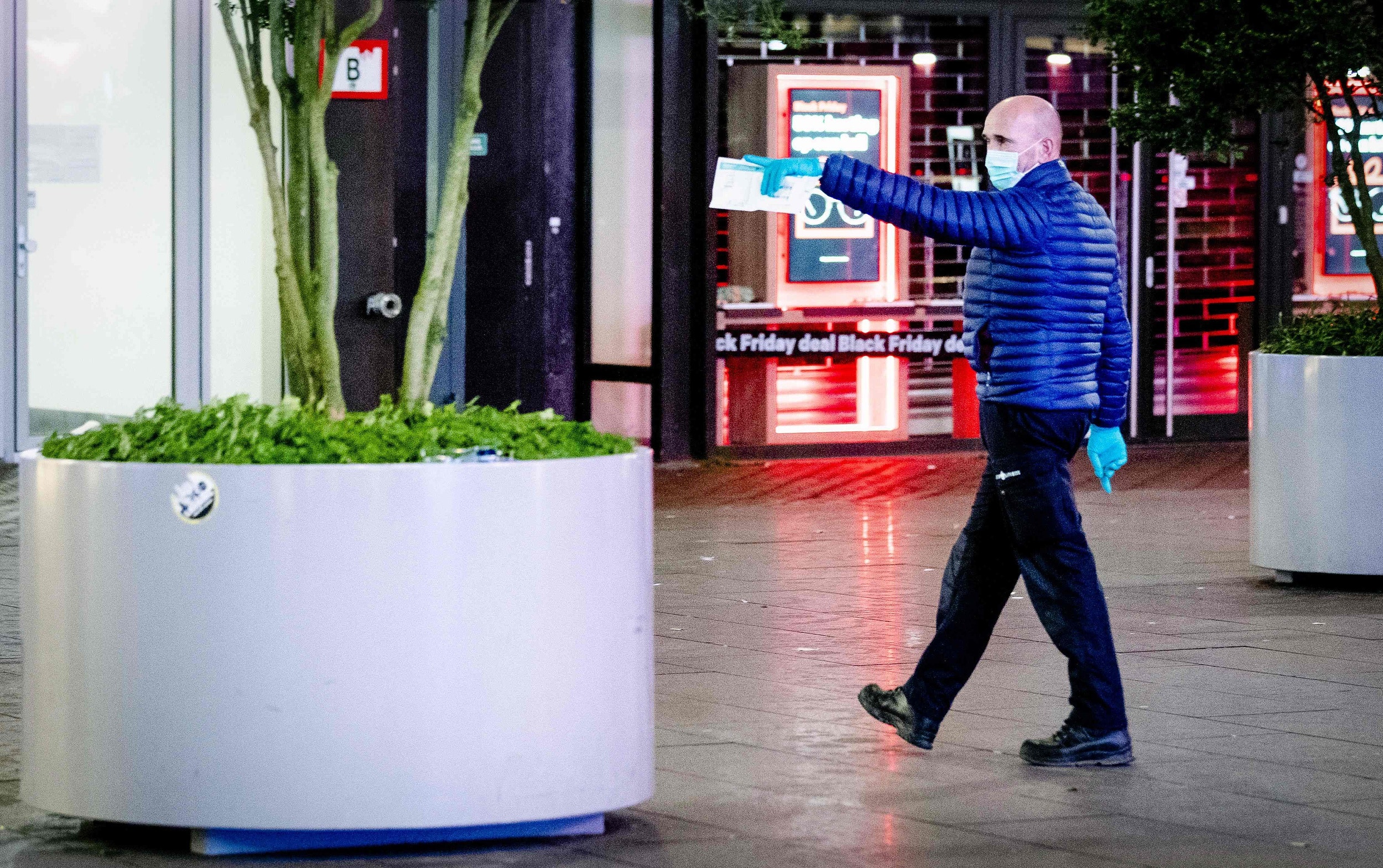 荷蘭城市海牙11月29日發生持刀襲擊事件,圖為兇手向途人施襲後,警方在市中心的購物大道設置封鎖線。(AP)