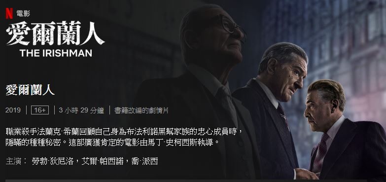 1. 《愛爾蘭人 The Irishman》|片長 3 小時 29 分