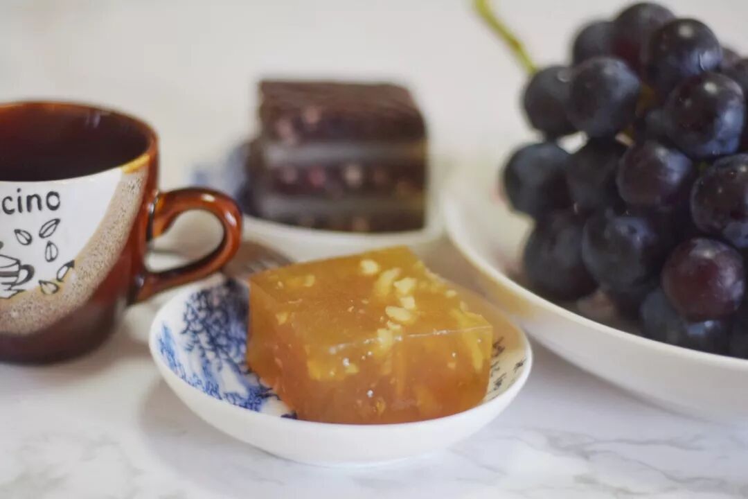 馬蹄糕是廣東地區傳統經典小吃。相傳源於唐代,以糖水拌合荸薺粉蒸制而成。荸薺,粵語別稱馬蹄,故名。其色茶黃,呈半透明,可折而不裂,撅而不斷,軟、滑、爽、韌兼備,味極香甜,入口且帶有一些馬蹄清香。