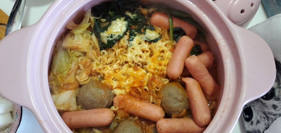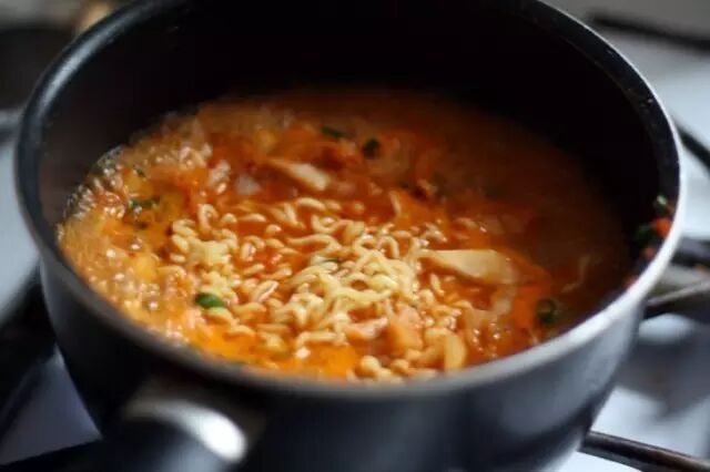 泡著吃算是最簡單的了,如果家里還有些辣白菜、芝士片,再加上隨便什麽丸子、香腸和青菜,一鍋滾燙的部隊鍋就煮好了!