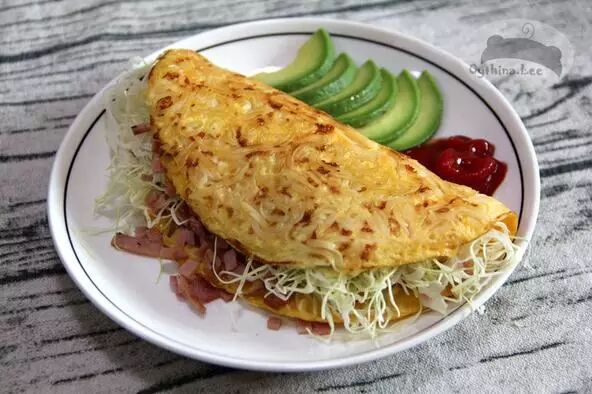 因為外形上cos了Taco,所以在口感上也要模仿一下啦,這里將一面盡量烤脆了,使其多少有一些脆餅的感覺。不過最後蛋液的加入,使其保持了一定的厚度,整體還是柔軟的。