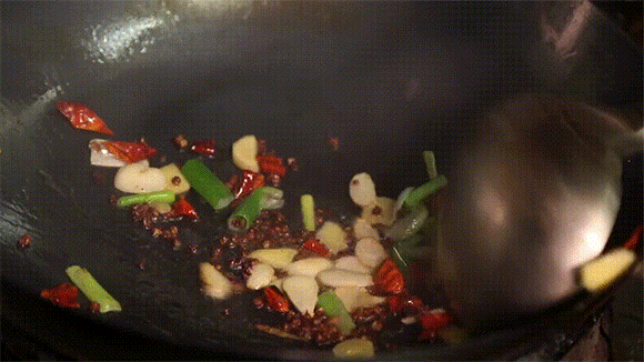 3、燒油,下入蔥姜蒜爆香,加入豆瓣醬以及秘制香鍋料。