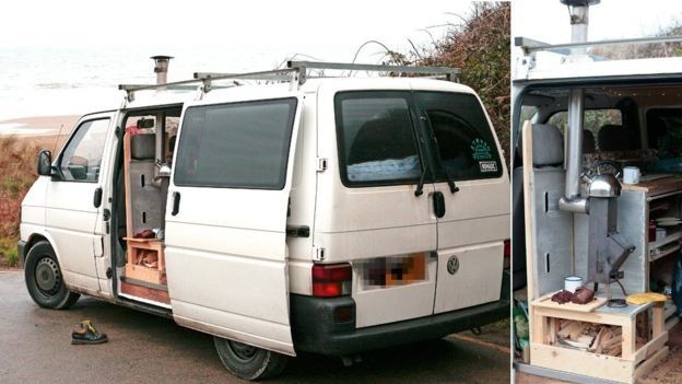 他們自從去年4月就住在這部房車中。車子裏有取暖爐設備和簡易廚房,還加了保暖隔熱層等。