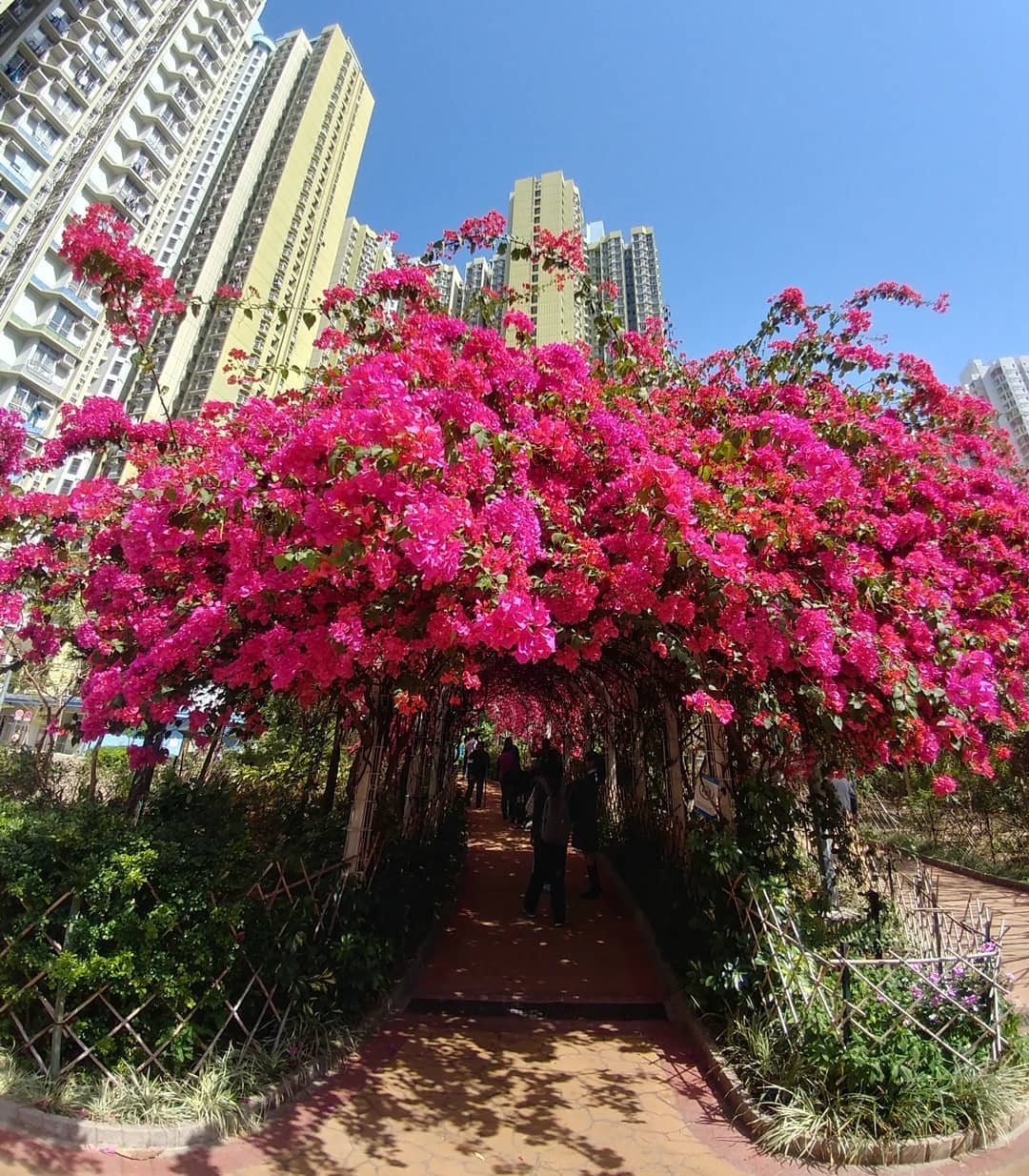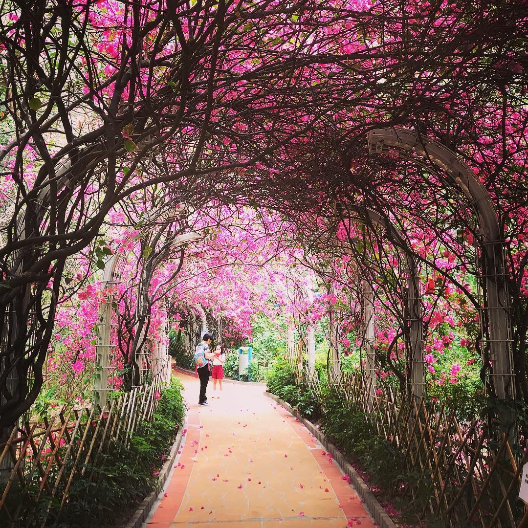 元州邨的杜鵑花隧道長30米,杜鵑依附在藤蔓隧道上盛放,就像走進了秘密花園,在這裡賞打卡,就是情侶和閨密賞心樂事。隧道的杜鵑其實是本港常見的簕杜鵑,學名「九重葛」,不過大部份人都直接叫該處為杜鵑花隧道。👇👇👇 想去賞花並不困難 👇👇👇