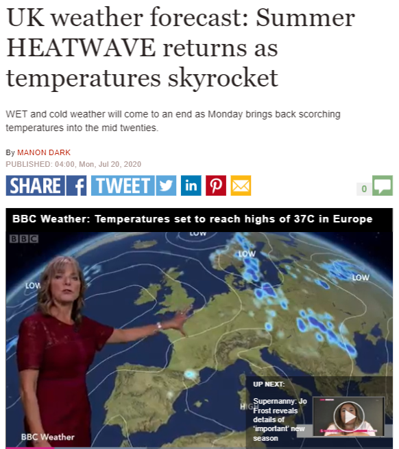 每日郵報:BBC天氣預報稱,歐洲氣溫將達到37C!