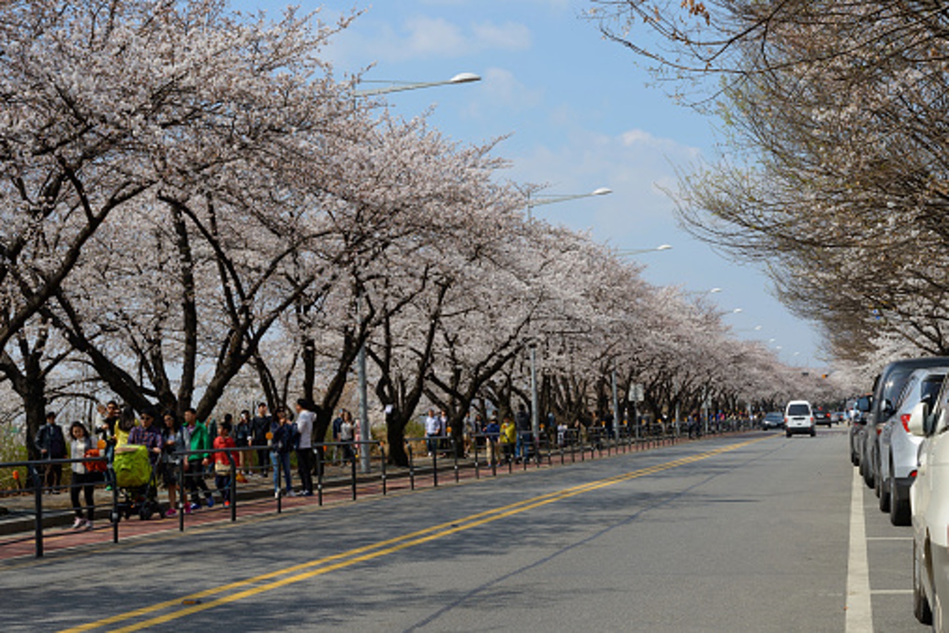 汝矣島可以說是首爾賞櫻必到景回,以輪中路為中心的汝矣島櫻花路,可以說是首爾櫻花季的代表!環繞著國會議事堂,全長5.7公里的輪中路,每年一到春天櫻花開始綻放,便會形成一條長長的櫻花隧道。另外慶典期間,每天晚上也會打上五顏六色的燈光,跟白天的櫻花相比,夜晚的汝矣島卻也多了一份豔麗。