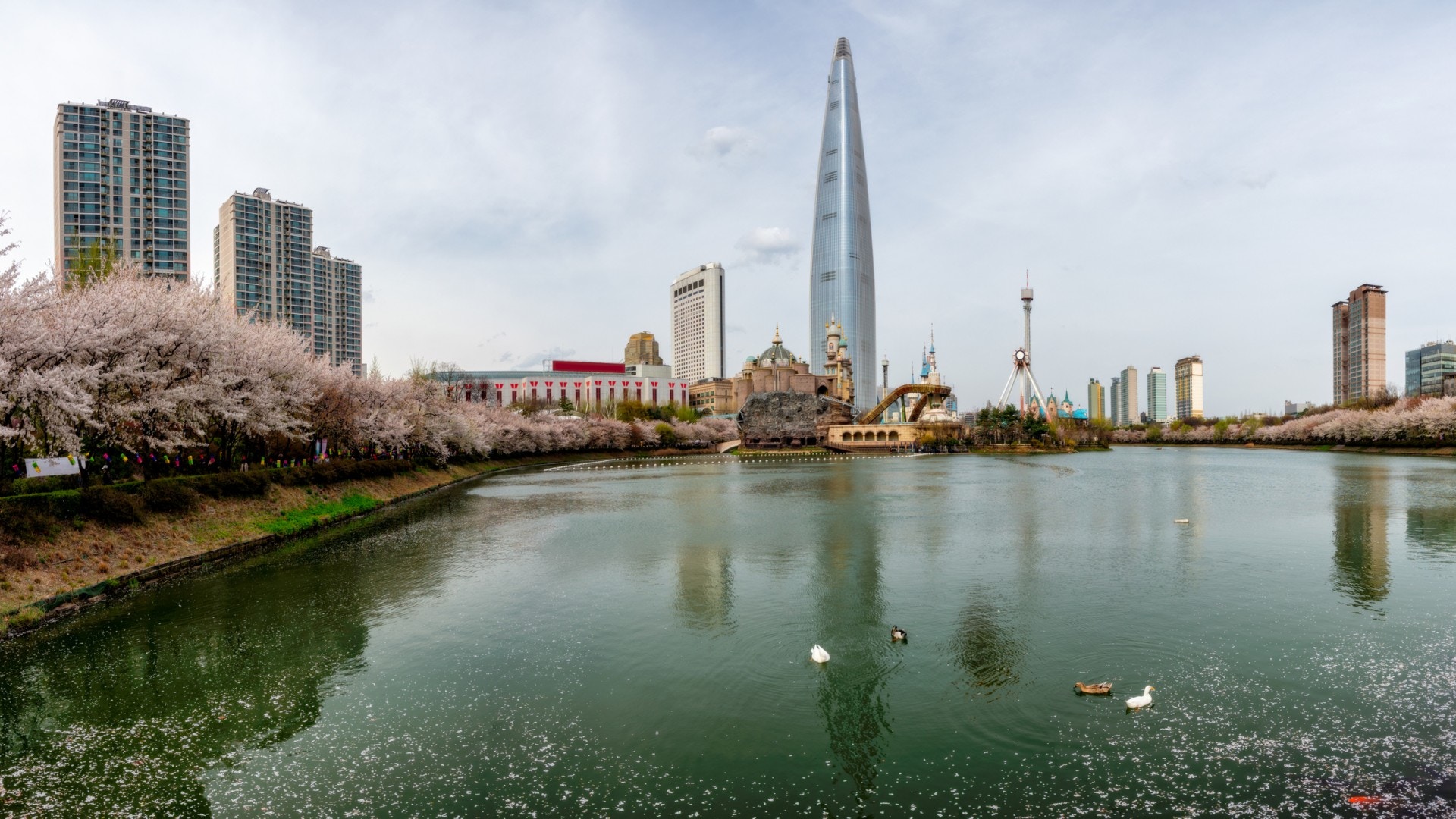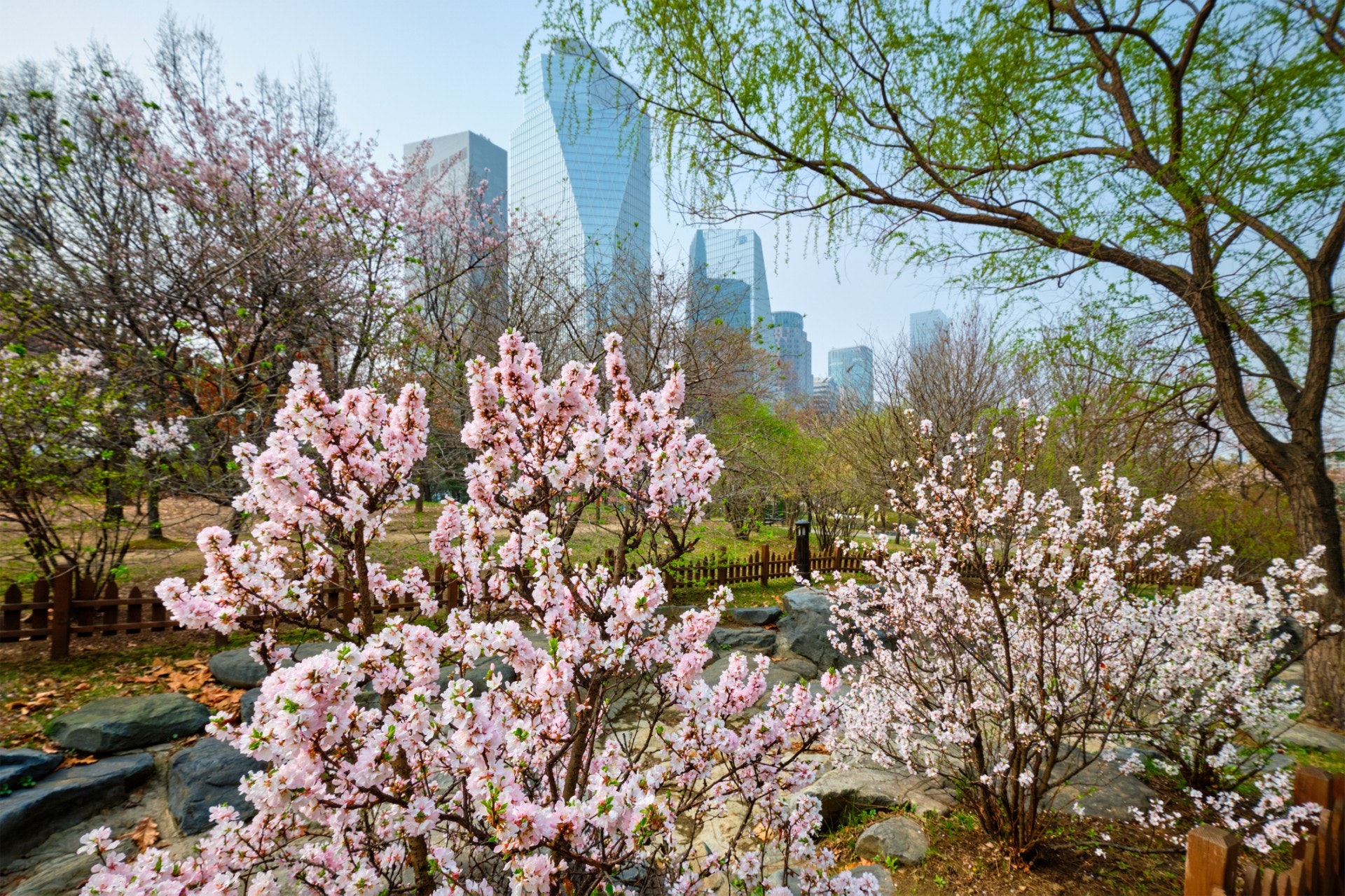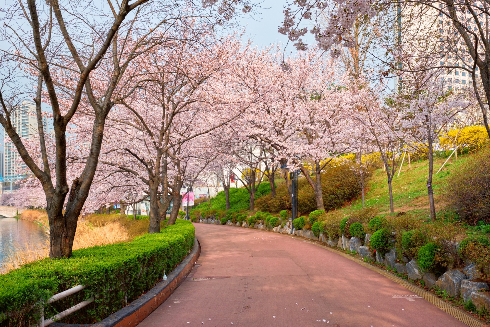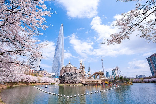 就算對石村湖不太熟悉,但你一定聽過樂天世界。位於樂天世界旁邊的石村湖周圍共有1000多顆櫻花樹,在高樓矗立的蠶室地區,兩旁盛開的櫻花彷彿是一條神秘隧道!