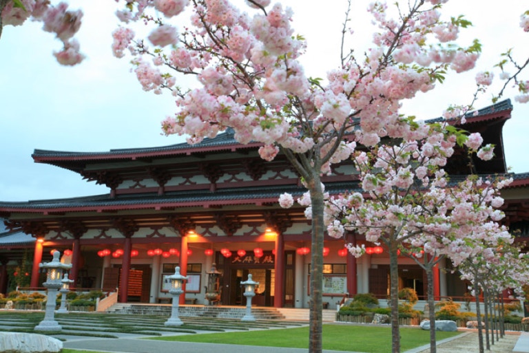 北島佛光山寺院的成佛大道旁種有兩排櫻花,配上相當具有中華建築特色的寺廟,放眼望去,禪意靜升。由於紐西蘭位於南半球,在11月的春季來臨時,櫻花將會盛開;院方也會在這邊舉辦櫻花饗宴,歡迎各方愛花人士前來共賞櫻花之美。