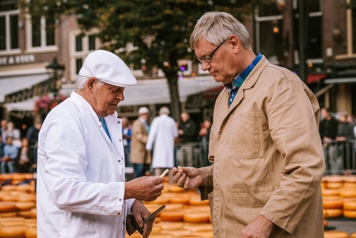 阿克馬芝士市場有四百年的歷史,這個從中世紀晚期流傳下來的交易傳統,在科技進步的今日,保存傳統文化遺產的意義與觀光效益或許更高於實際的商業交易。芝士市場開市後,穿著實驗袍的檢驗員會用一個弧形的刮刀取出條狀的芝士樣本,來進行芝士內部的分析。除了視覺檢驗芝士眼(芝士內的空洞)是否分布均勻外,也分析該樣本的質地、氣味與味道。