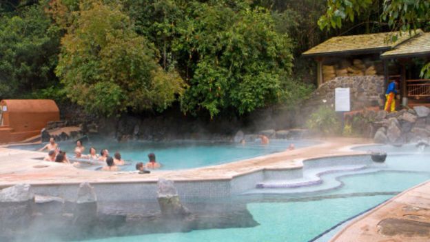 這些各式各樣的溫泉池坐落在安第斯山一列山脈腳下的森林中。樹枝往外延伸懸於水面之上,鳳梨花攀附著樹枝,漸漸靠近水流。溫泉池深度不同,溫度各異:深度從深及膝蓋到深及脖頸,一應俱全;從地下湧出來的水溫度在適合泡澡的30攝氏度和滾燙的70攝氏度之間,而溫泉池子裏的水溫則在36度到40度之間,這一水溫變化當你在不同池子之間移動時感覺會非常明顯。