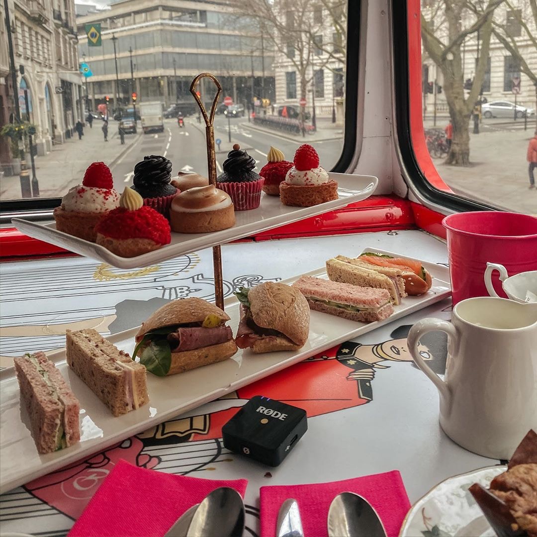 如果想來點不一樣的體驗,要不要考慮在巴士上喝杯下午茶呢?這聽起來可能會把下午茶灑滿一地,但不要擔心!他們有準備杯托來防止這一點。從外面看,這輛巴士可能看起來就像一輛普通的倫敦巴士。但特別的是他裡面有相當複古的設計,充滿了鮮花和童話般的裝飾。你可以一邊享受傳統英國的美味茶點,同時也可以看到倫敦所有最著名的景點。他們的餐點也適合每一種不同的飲食需求,不管是純素、素食、清真和無麩質的餐點都有!